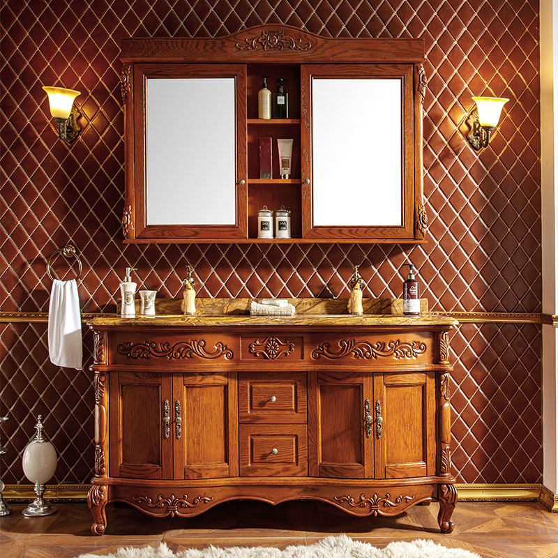欧式浴室柜 红橡木浴室柜 实木洗手台盆柜 落地台盆柜整体组合