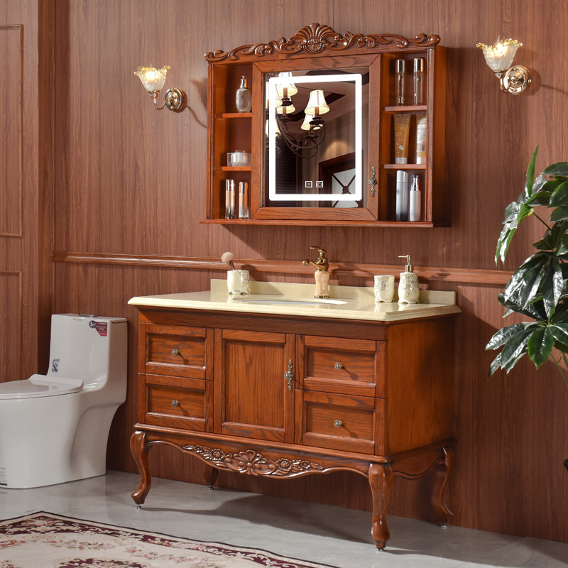 欧式浴室柜橡木卫生间洗手盆柜组合洗脸盆柜实木简欧卫浴柜落地