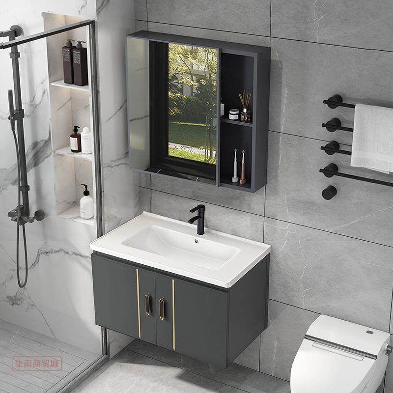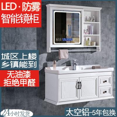 智能欧式防水浴室柜镜柜壁挂太空铝洗手盆防雾镜子洗漱洗脸盆组合
