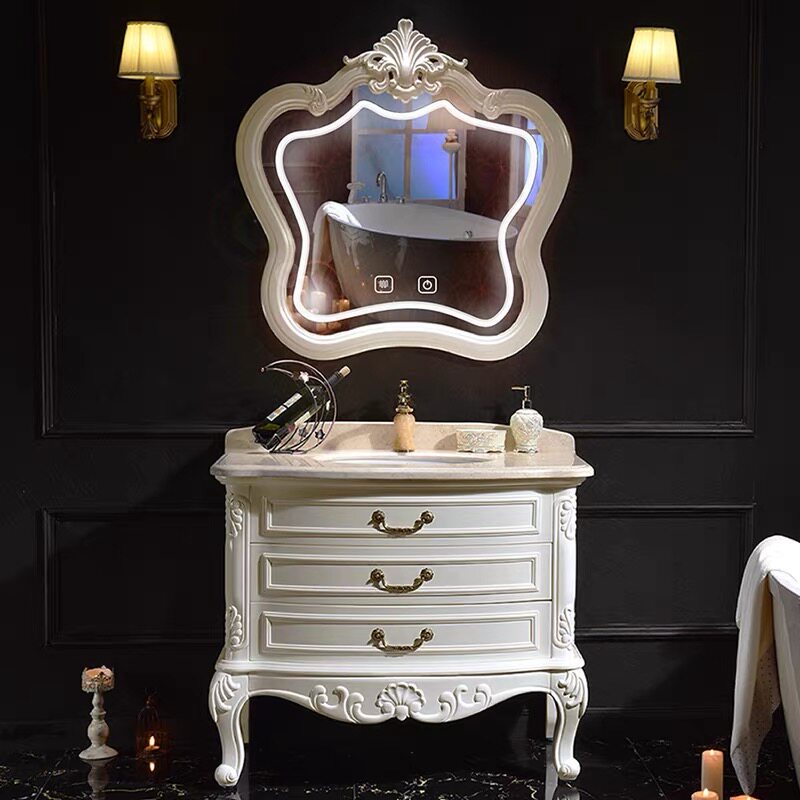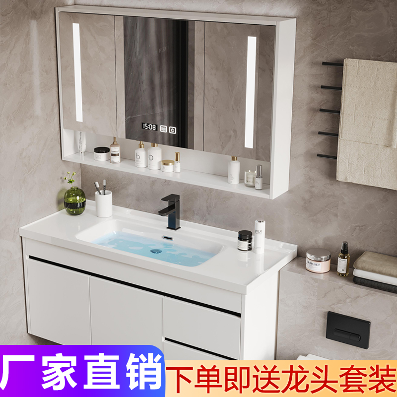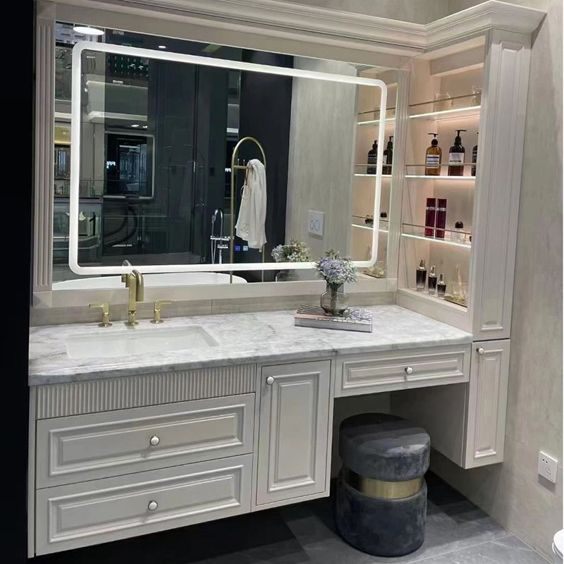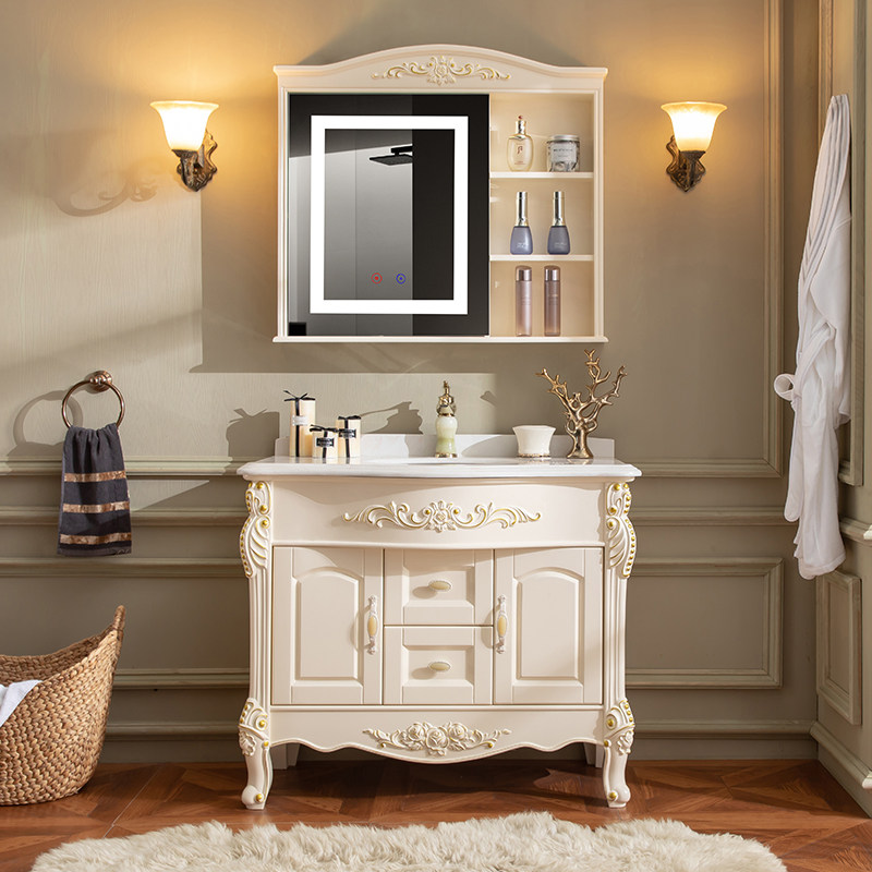 轻奢欧式浴室柜组合卫生间洗手盆实木现代简约智能镜柜一体盆洗漱