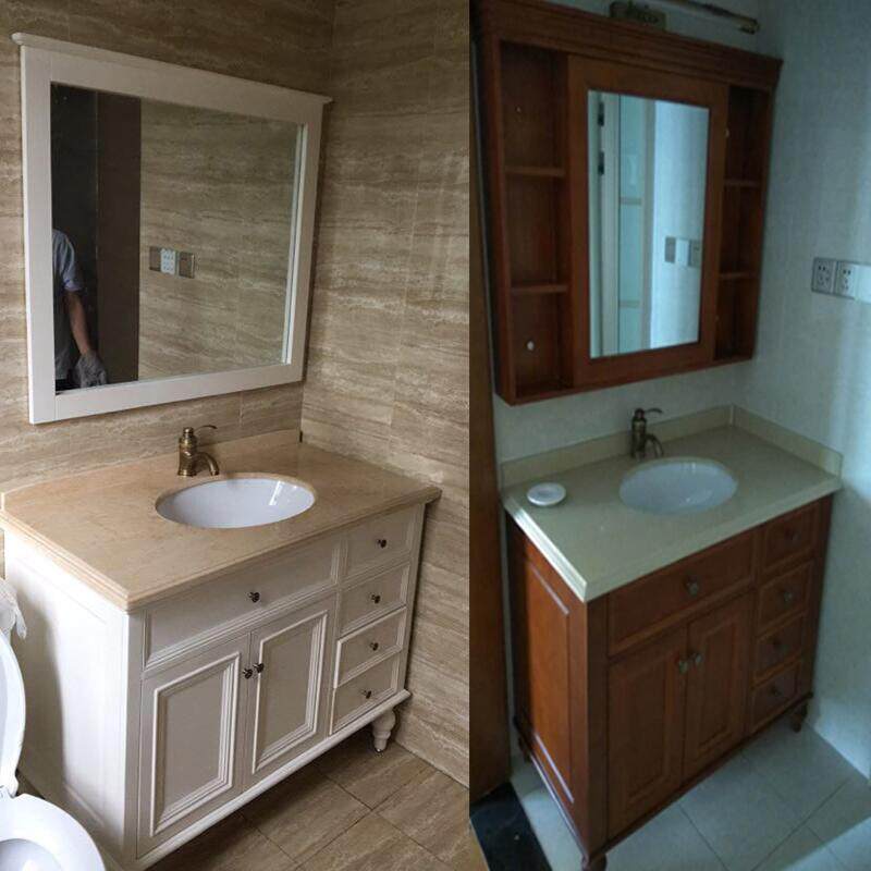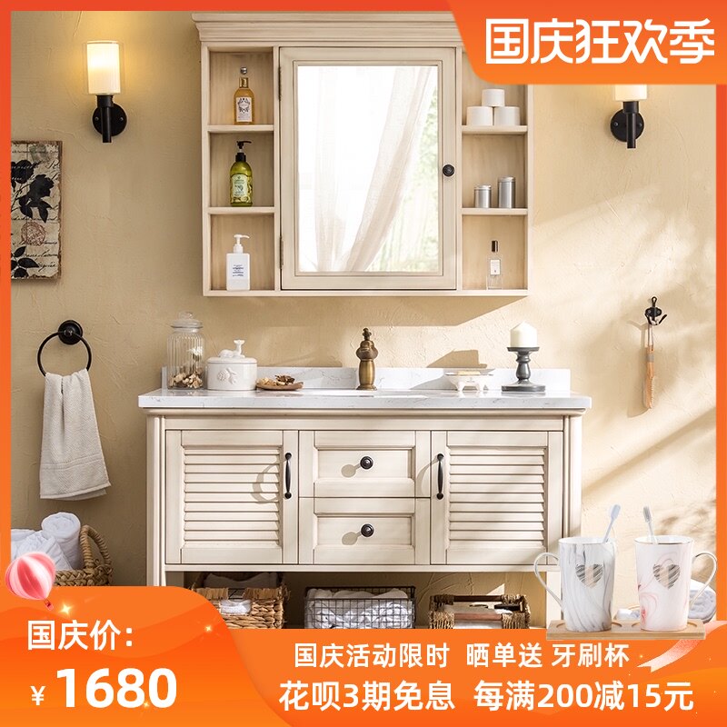 美式橡木落地浴室柜组合大理石洗手洗漱台洗脸面盆欧式实木卫浴柜
