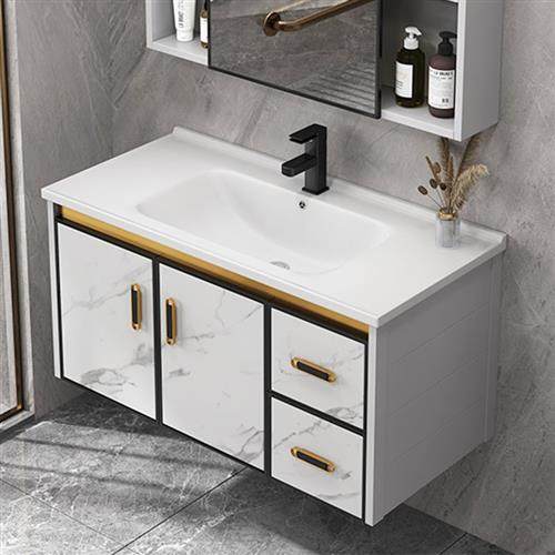 简约欧式卫浴现代浴室柜组合洗手脸盆柜pvc玉石台面落地陶瓷吊柜.