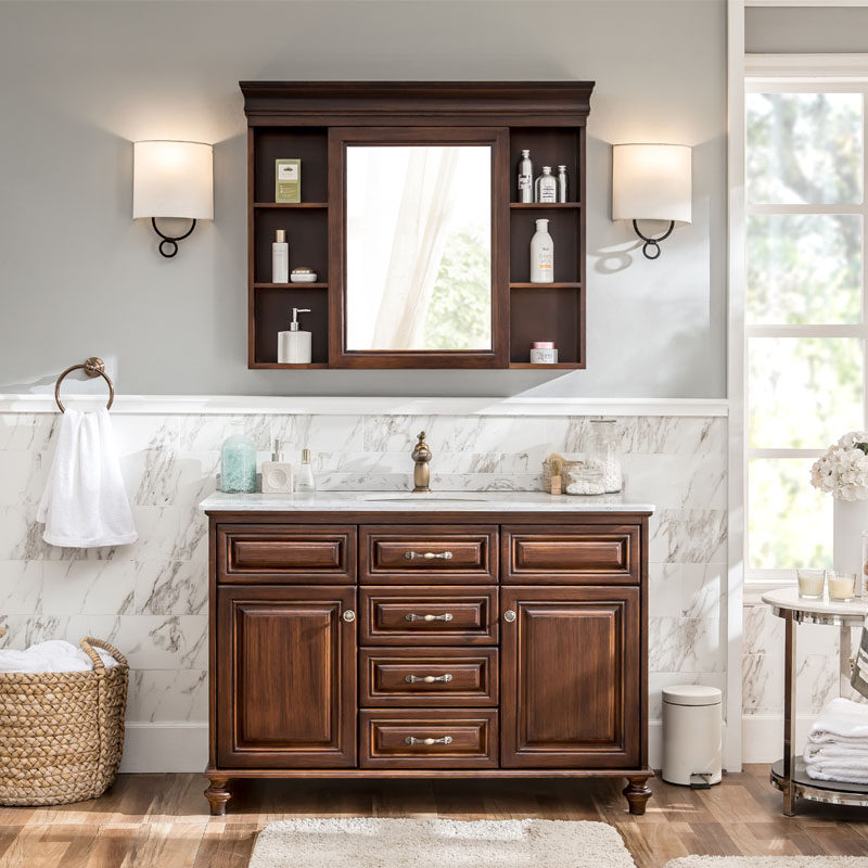 奥卫冠欧式浴室柜红橡木卫浴柜卫生间洗手洗脸盆镜柜组合定制美式