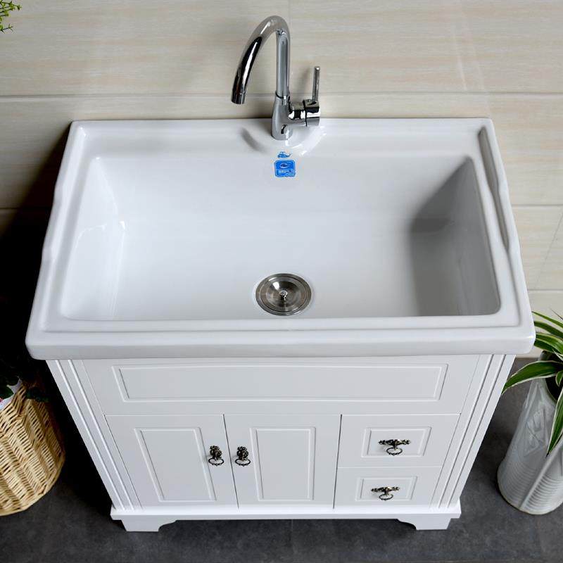 阳台洗衣柜带搓板洗衣池陶瓷盆欧式浴室柜组合实木柜洗衣台小户型