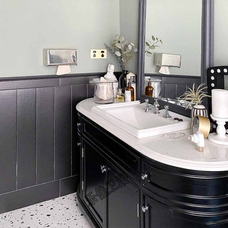 圆弧形进口橡木欧式浴室柜卫浴洗漱台洗脸盆柜组合厕所柜子定制