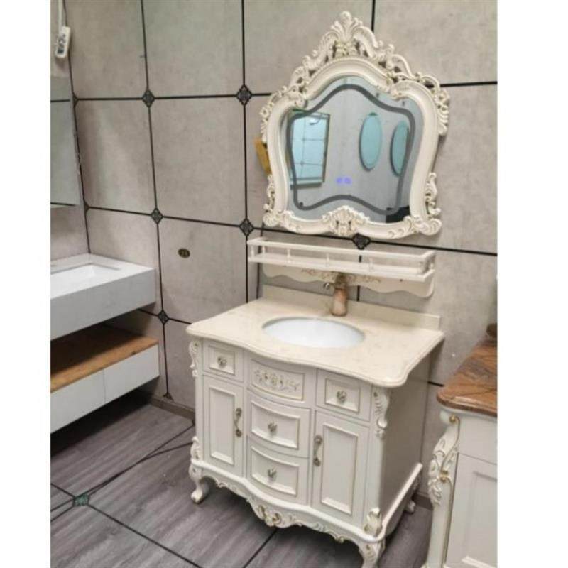 法式浴室柜组合橡木欧式卫生间洗漱梳妆台一体洗脸盆奶油风洗手池