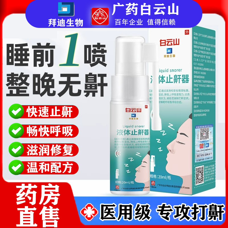 白云山液体止鼾器旗舰店打呼噜男士打鼾女仿呼噜喷雾喷剂家用正品