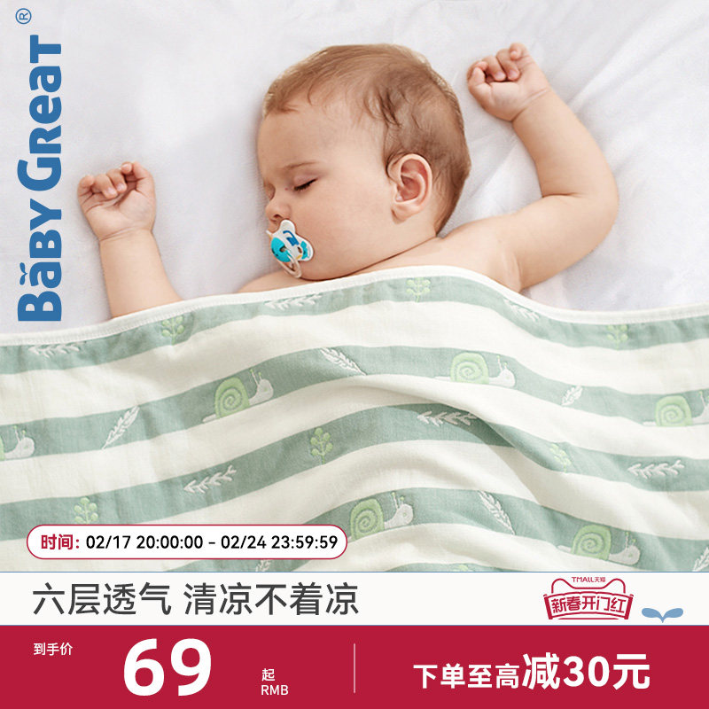 babygreat六层纱布儿童毛巾被纯棉午睡毯新生婴儿盖毯宝宝空调被