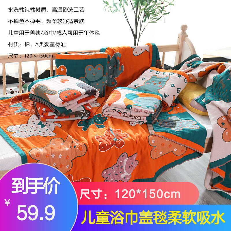 牛奶味十层纯棉纱布儿童面包被全棉盖毯家用单人毛巾被子超软宝宝