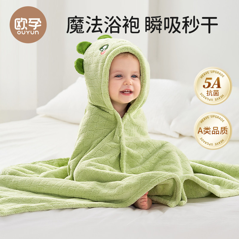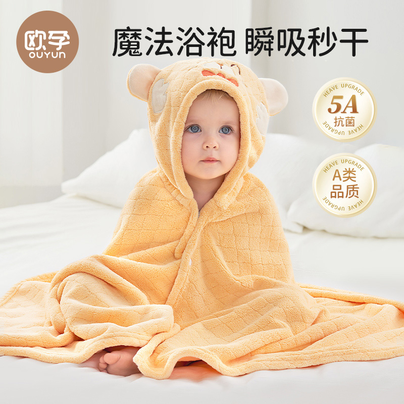 欧孕婴儿浴巾秋冬季宝宝儿童带帽斗篷浴袍男女童新生吸水包被毛巾