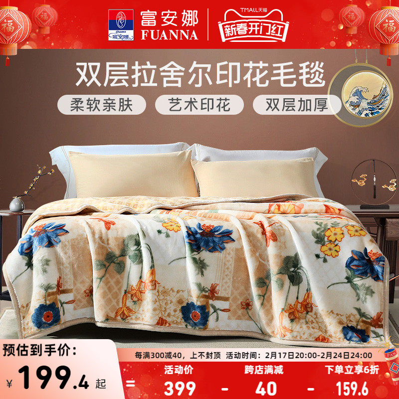 富安娜毛毯毛巾被冬季空调毯子法兰绒珊瑚绒毯午睡舒柔绒毯沙发毯