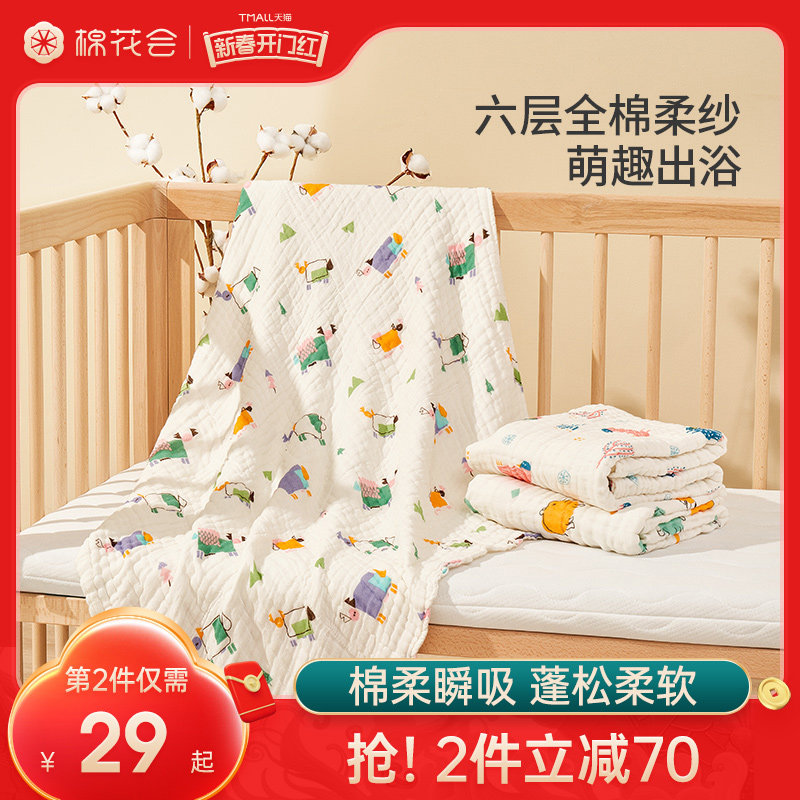 高密纱布婴儿浴巾纯棉六层初生儿童毛巾被子新生儿宝宝浴巾秋冬