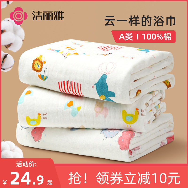 洁丽雅婴儿纱布浴巾纯棉超柔软吸水毛巾洗澡宝宝新生儿童全棉包被