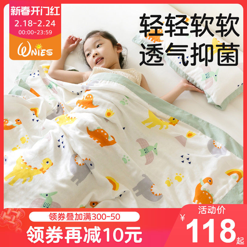 贝肽斯婴儿童浴巾新生超软全棉六层纱布盖毯毛巾被初生宝宝专用款