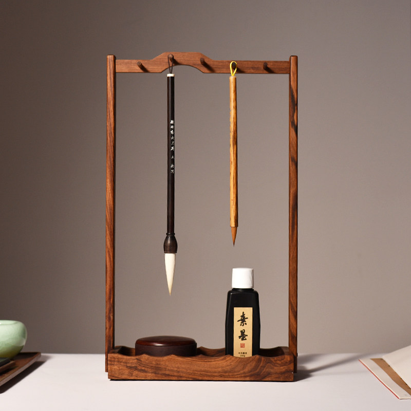一得阁步步高升笔挂文房四宝黑檀木菠萝格毛笔架笔挂实木笔墨纸砚毛笔墨水笔搁书法国画专用官方旗舰店