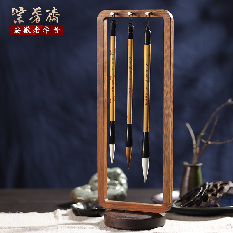 文昌笔挂毛笔4支实木笔架摆件书桌位文房四宝套装刻诗人名字李白