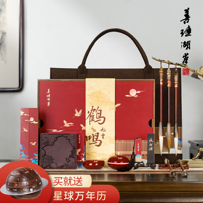 善琏湖笔 鹤鸣九霄 文房四宝套装笔墨纸砚全套高档礼盒墨条墨块徽墨毛笔笔架书法专用砚台镇纸专业级高级送礼