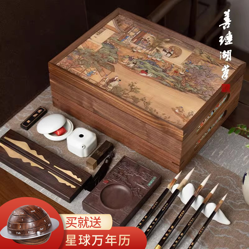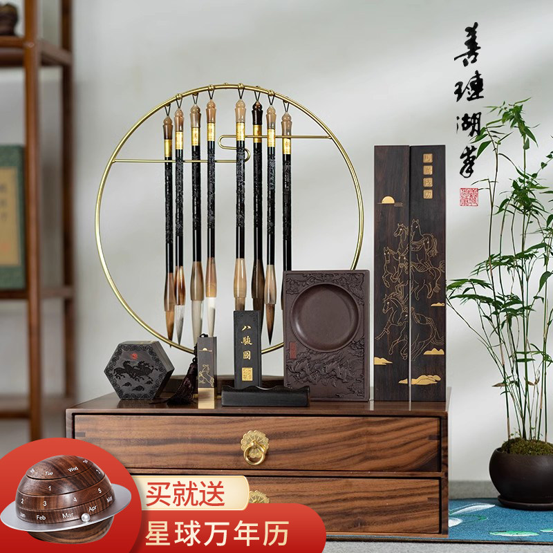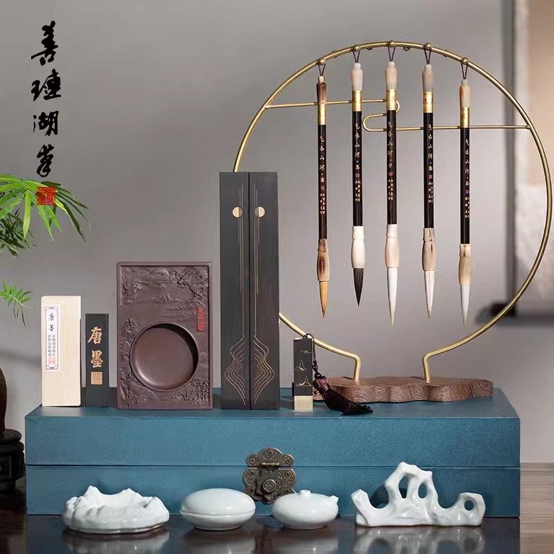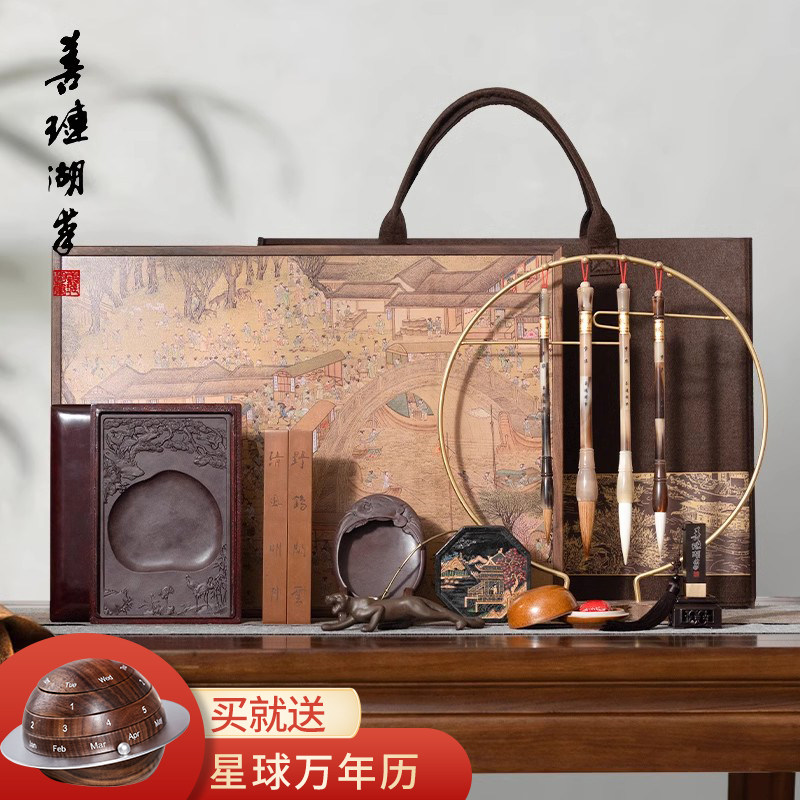 善琏湖笔汴京梦华录文房四宝套装笔墨纸砚高级礼盒毛笔砚台专业毛笔挂架文房四宝套装毛笔架高档毛笔书法专用