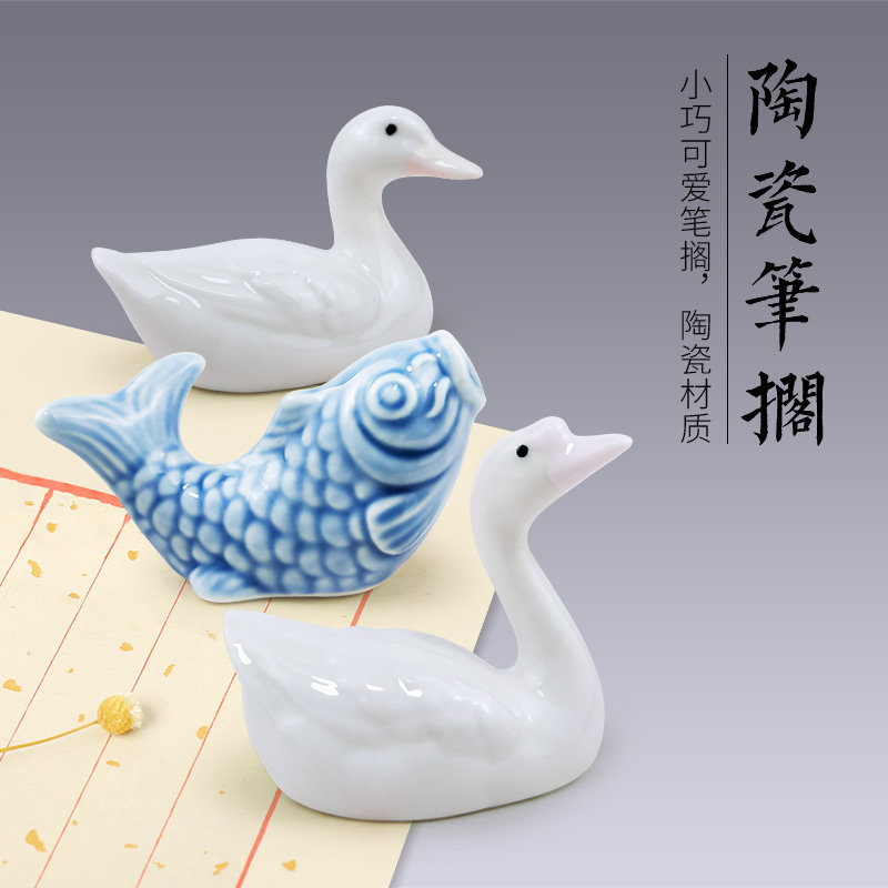 天一堂可爱笔搁笔山陶瓷笔架书法用品挂架笔挂萌物摆件创意笔托多功能文房四宝动物毛笔架子学生搁笔架笔置