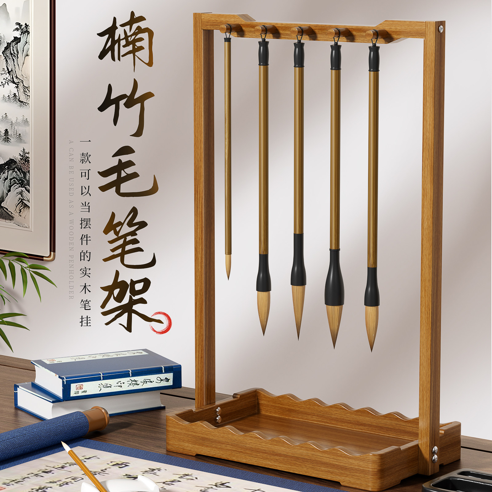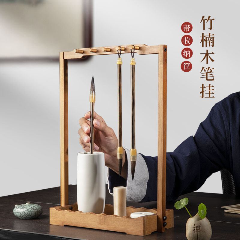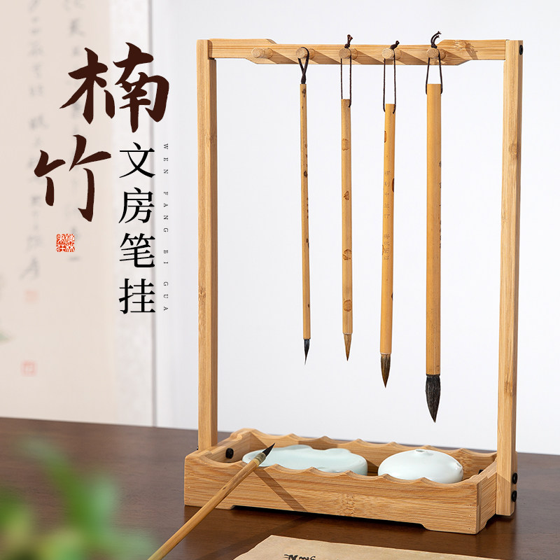 梅林笔庄毛笔架笔挂楠竹置物架多层加厚架托创意简约多功能文房四宝收纳架书房桌面新中式摆件挂毛笔的笔架
