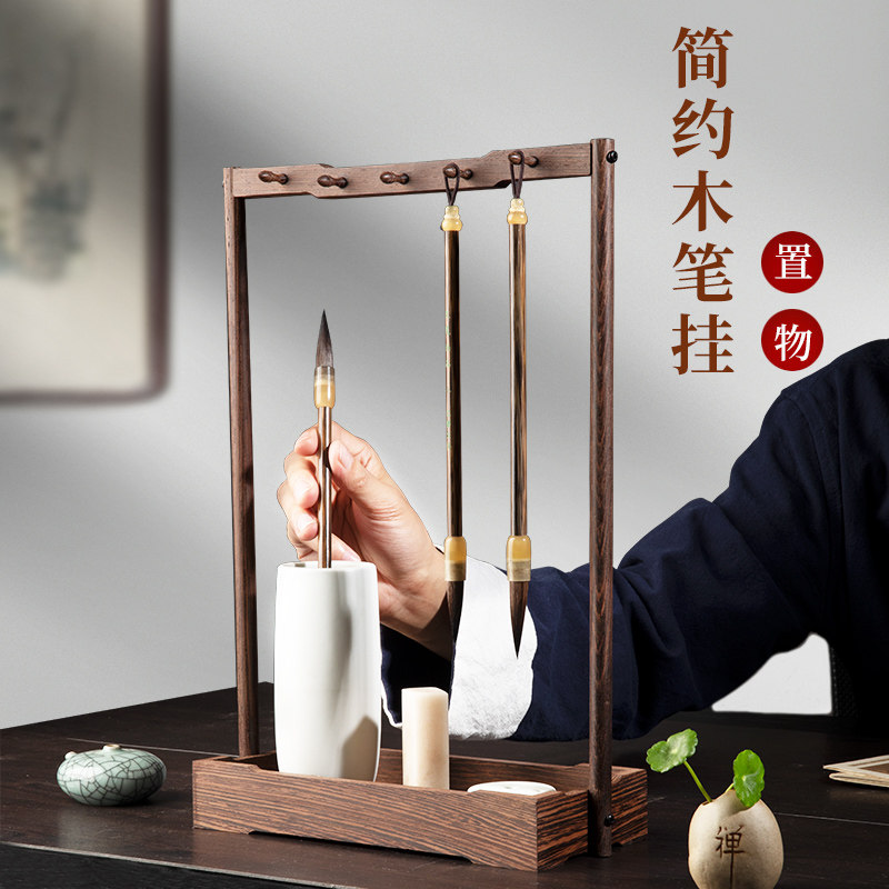 张小凤笔架毛笔架笔挂简约现代学生文房四宝置物架简约复古胡桃木实木创意摆件全套毛笔架子中式书法毛笔挂架