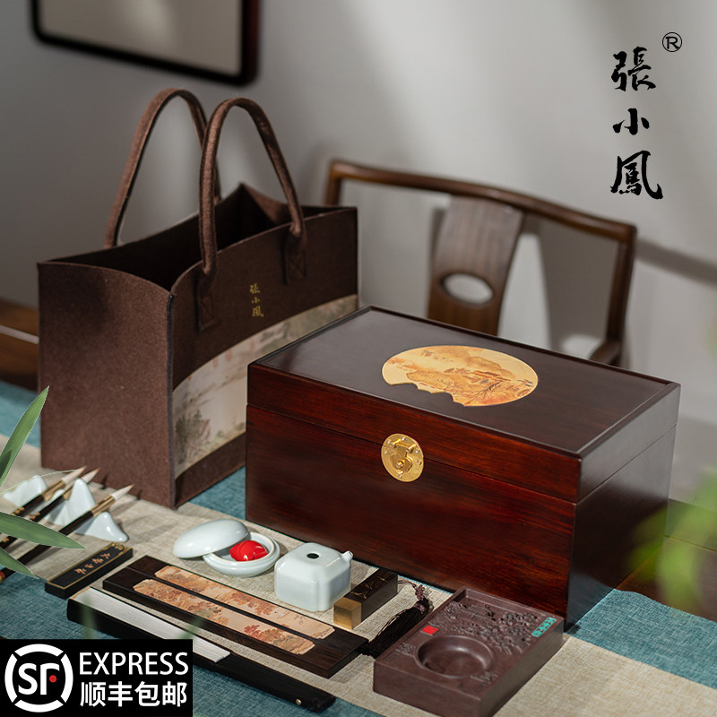 张小凤 千里江山 文房四宝套装砚台毛笔架书法挂架专用墨条笔墨纸砚笔挂墨块精品毛笔套装礼盒国画摆件初学者