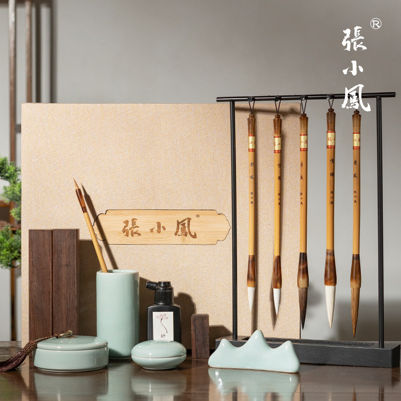 张小凤毛笔专业入门练字笔墨纸砚初学儿童文房四宝书法套装入门专用毛笔字砚台国画镇纸笔架毛笔架成人礼盒