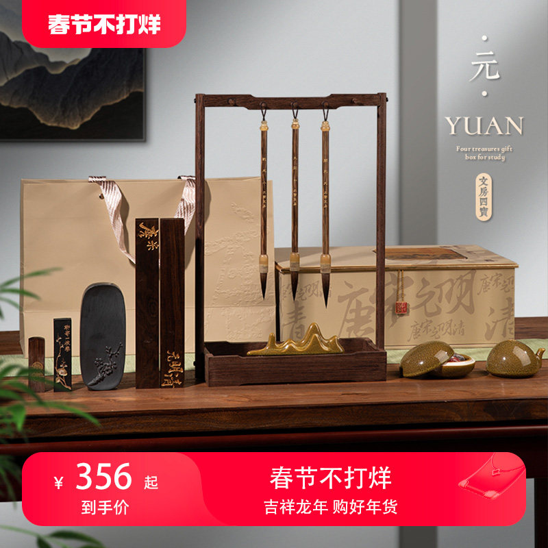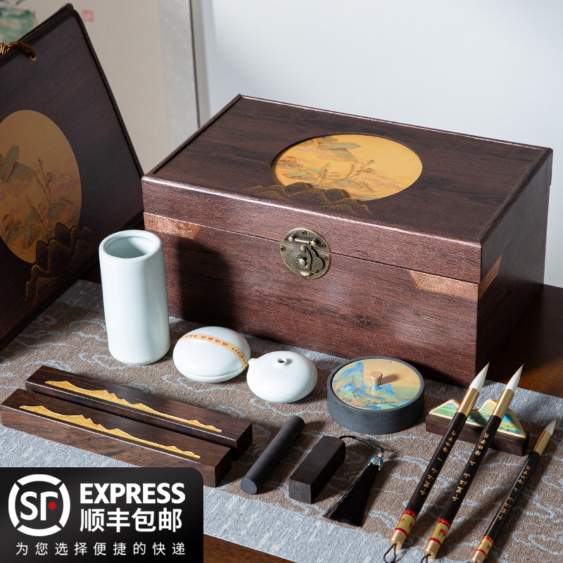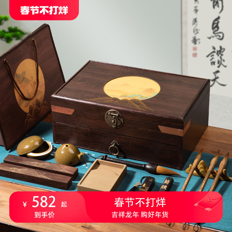 文房四宝套装笔墨纸砚全套礼盒装砚台笔架镇尺初学者毛笔书法套装
