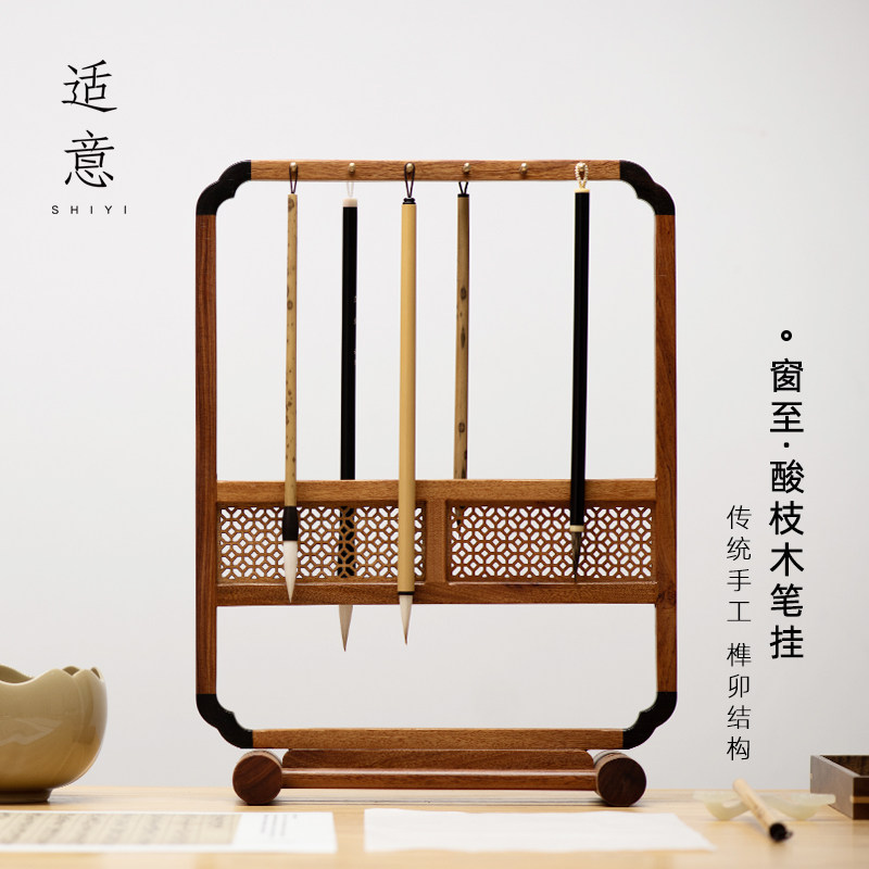 毛笔架笔挂实木架国画书法新中式桌面晾笔架小摆件挂笔的架子画笔收纳架创意文房四宝展示置物架鸡翅木文昌笔
