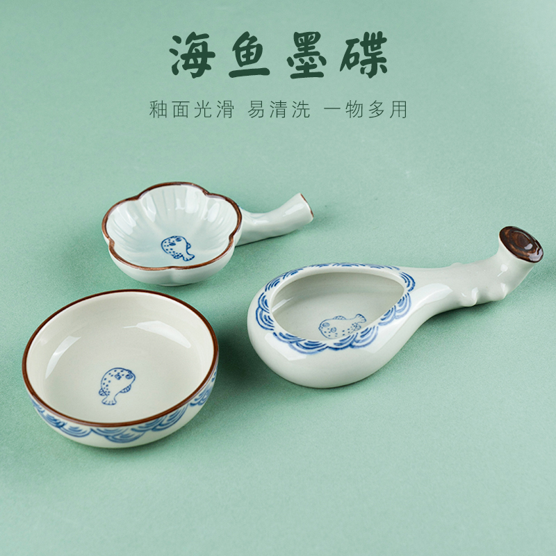 书法墨碟陶瓷墨汁墨盒砚台书法专用墨盘陶瓷墨碟笔洗笔搁墨水碟文房四宝墨池毛笔墨蝶水碟瓷碟砚毛笔架笔挂