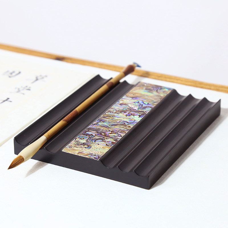 赋比兴 国家非遗 镶嵌螺钿毛笔笔床 精品漆器实木笔搁 文创产品笔架文房四宝复古中国风创意简约办公桌面摆件