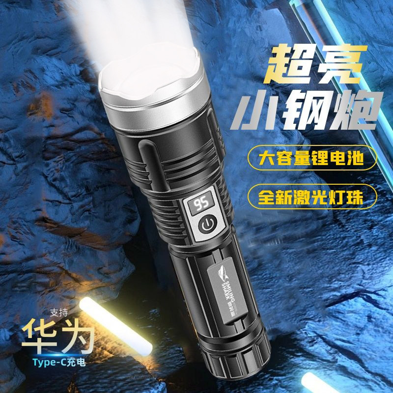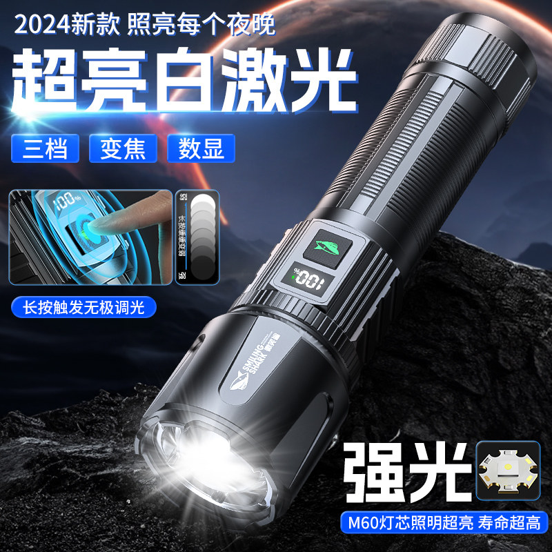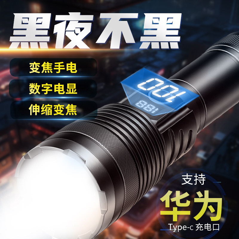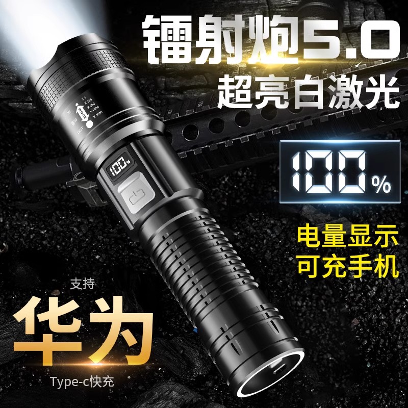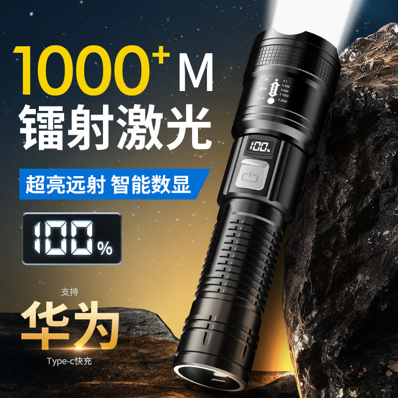 户外液晶电显手电筒强光充电超亮远射长续航氙气激光多功能手电灯