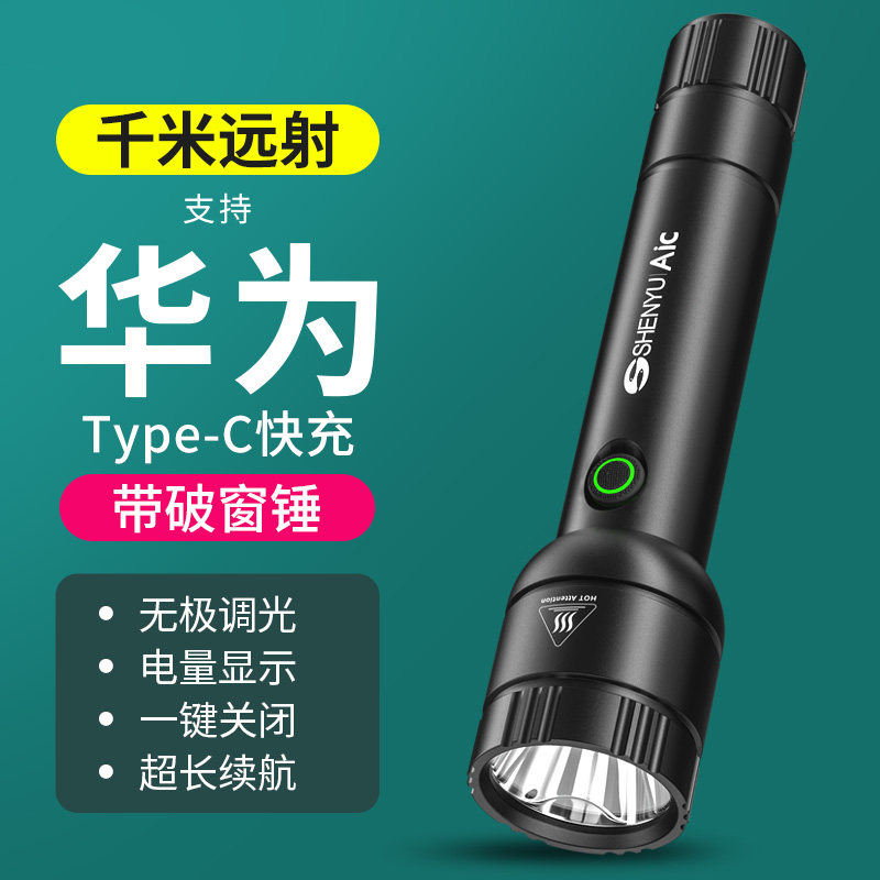 硕森强光手电筒超亮可充电式户外大功率远射家用氙气多功能耐用灯