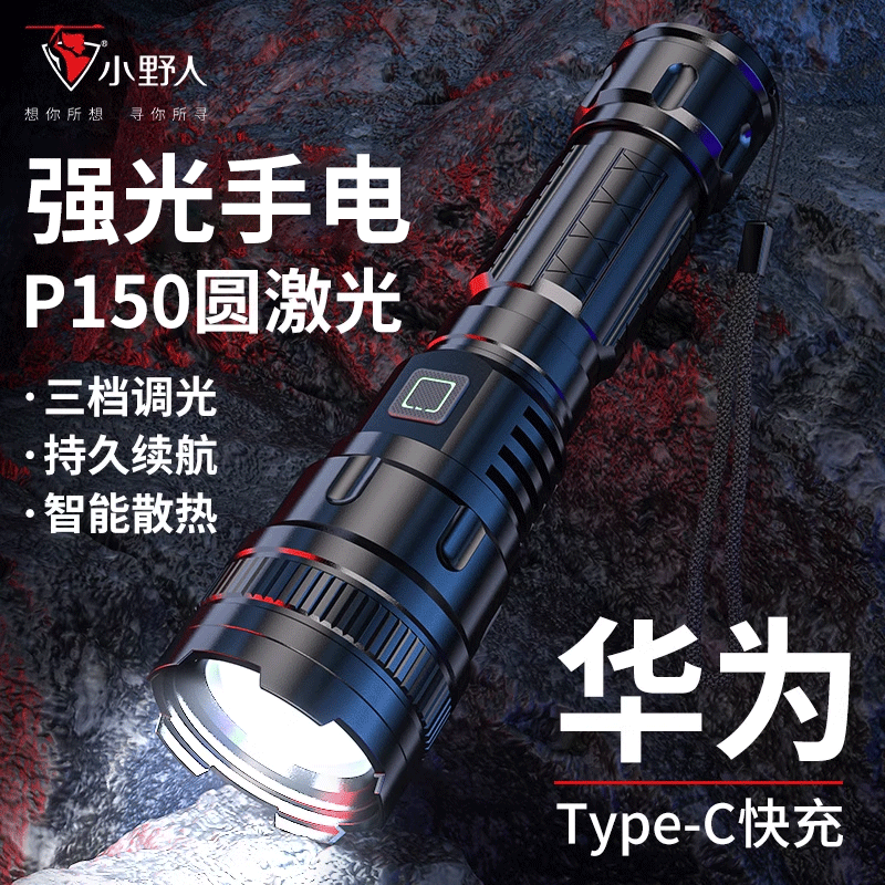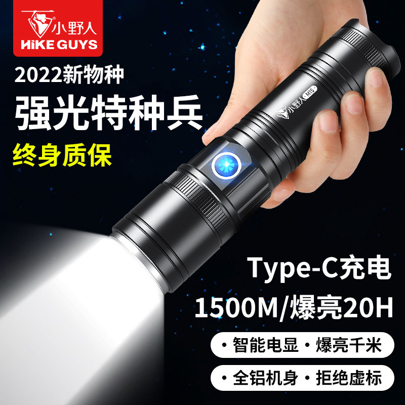 小野人手电筒强光充电式超亮远射小型便携家用户外迷你氙气灯