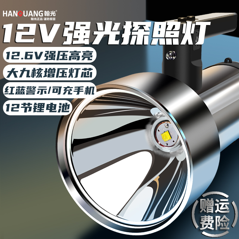 12V强光超亮手电筒疝气灯led充电手提探照灯远射户外大功率氙气灯
