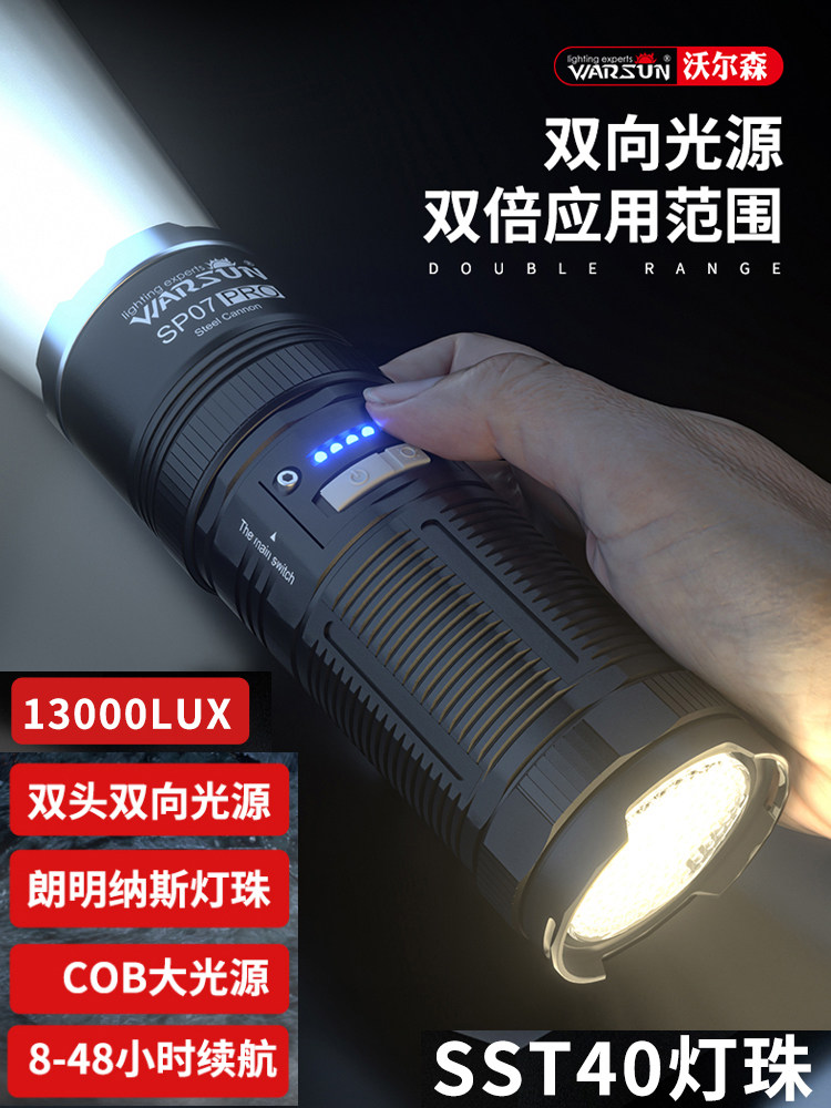 沃尔森SP07手电筒前后双光源T120可充电式户外远射家用氙气耐用灯