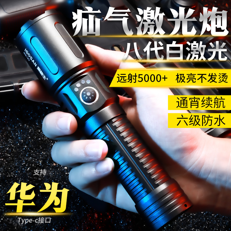 强光远射充电手电筒户外白激光战术家用专26650锂电池超亮氙气灯