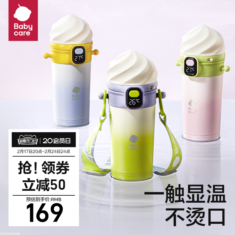 babycare冰淇淋保温杯儿童智能数显水杯幼儿园便携水壶亲子吸管杯