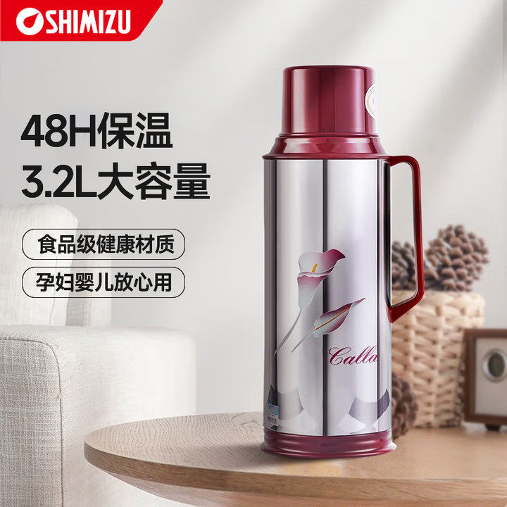 SHIMIZU清水不锈钢热水瓶大容量家用保温暖水壶学生宿舍开水暖瓶