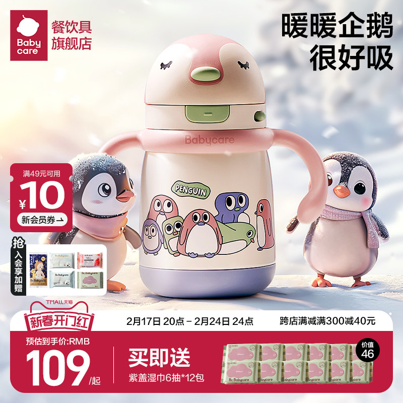 babycare儿童保温杯婴幼儿宝宝水杯学饮杯水壶幼儿园把手款吸管杯
