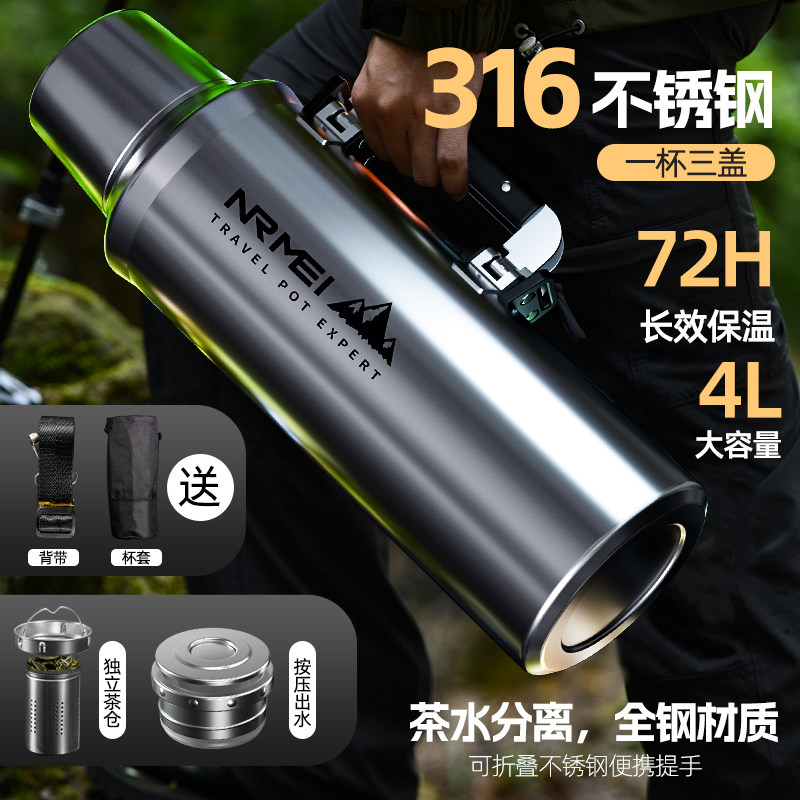 全钢保温壶便携式316不锈钢保温杯大容量5升冬天户外车载热水壶6L