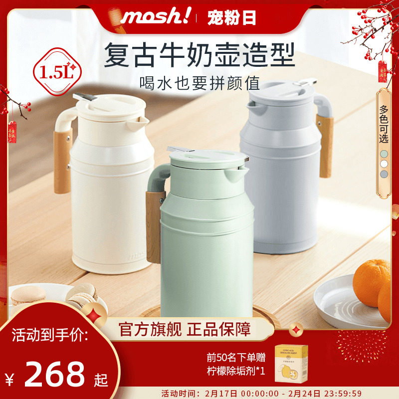 mosh保温壶家用大容量不锈钢牛奶壶360旋转保温水壶1.5L