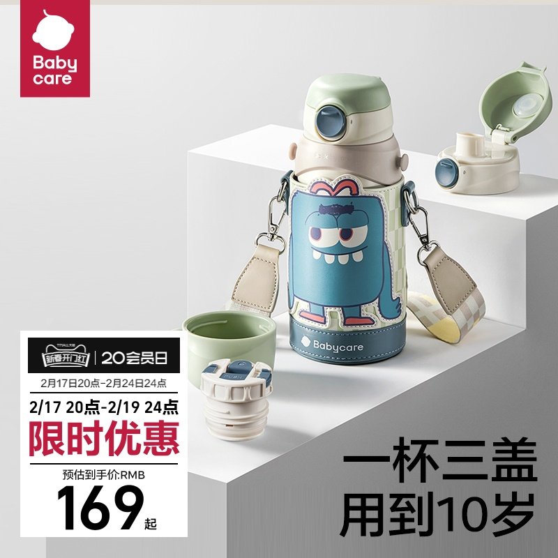 babycare三合一儿童保温杯水杯婴儿宝宝学饮杯吸管杯幼儿园水壶