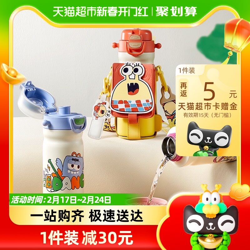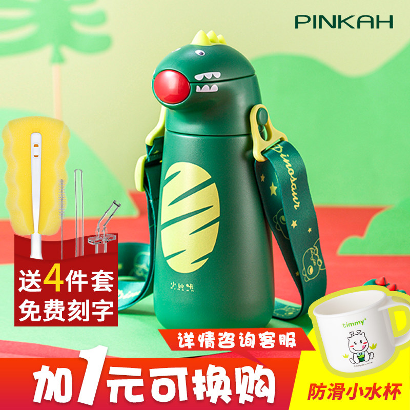 小比咔恐龙儿童保温杯男孩宝宝吸管水杯女食品级316L上学专用水壶
