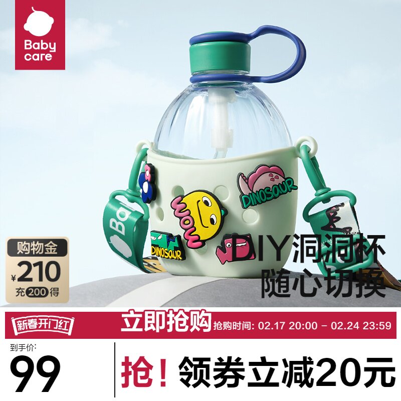 babycare洞洞吸管水杯儿童DIY直饮幼儿园外出携带大容量水壶夏季