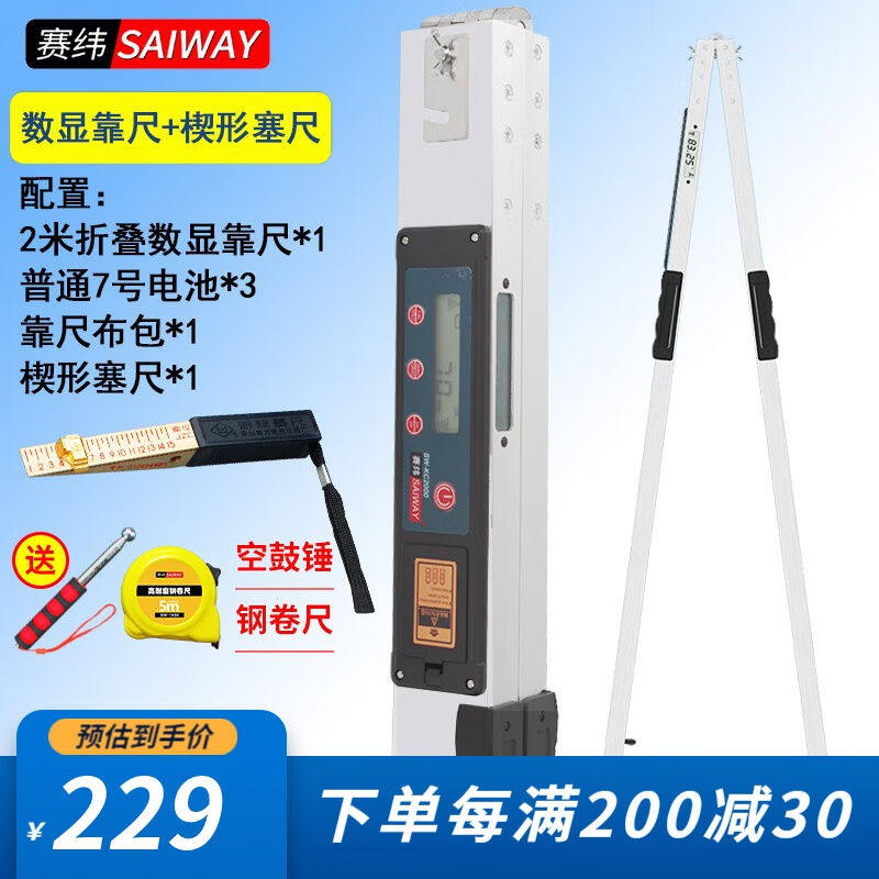 靠尺2米垂直铝合金工程数显检测尺折叠水平尺高精度建筑验房工具