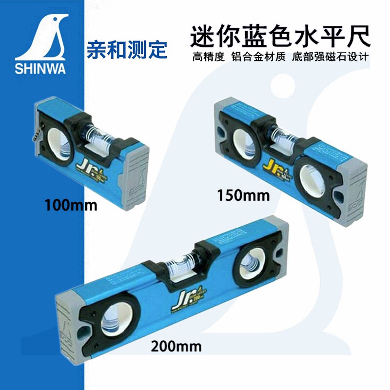 日本亲和水平尺迷你型高精度SHINWA企鹅小巧便携铝合金水平仪强磁