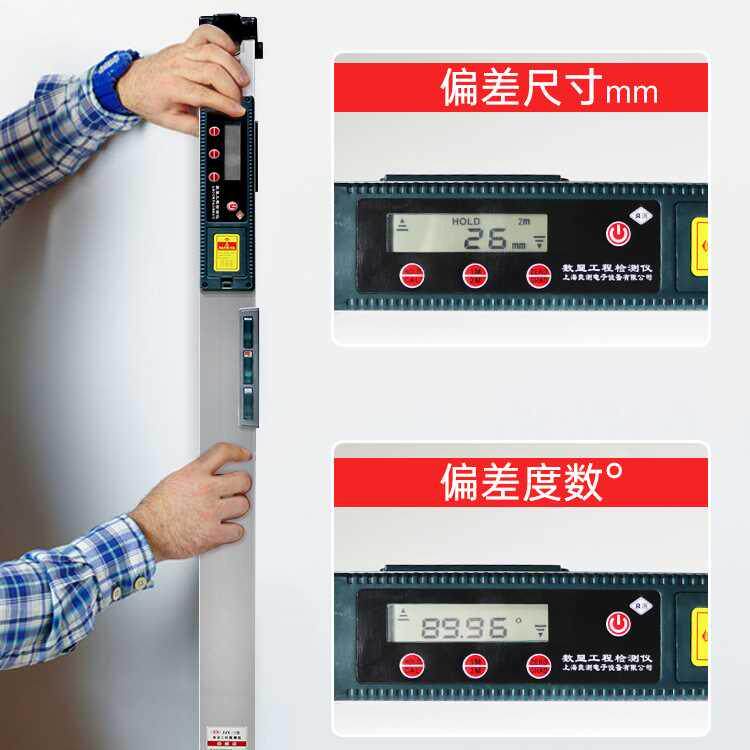定制良测铝合金2米折叠靠尺数显水平尺高精度电子垂直检测尺验房