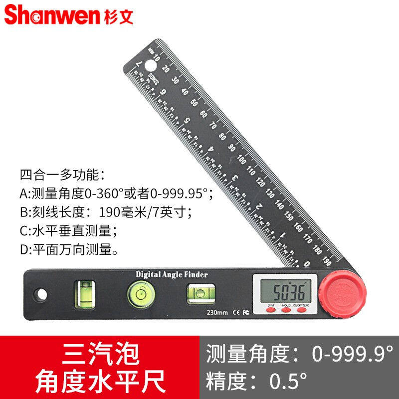 杉文多功能数显角度尺水平尺量角器高精度水平仪直尺万向水准仪四