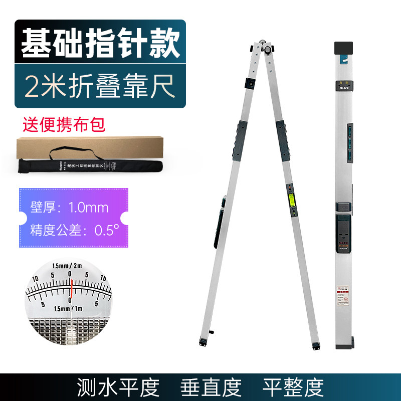 靠尺2米折叠铝合金水平尺1高精度数显垂直建筑工程检测尺验房工具